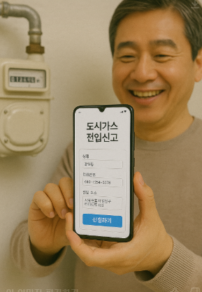 - 상담원 연결 후 **"도시가스 전입신고(연결 신청) 하려고 합니다"**라고 말씀하세요.