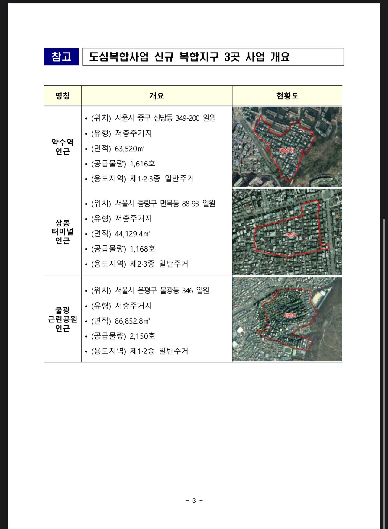 약수역, 상봉터미널, 불광근린공원 - 도심 공공주택 복합지구 지정