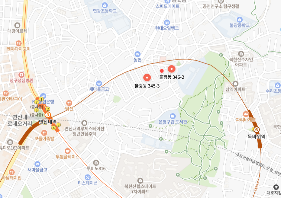 | 구분 | 약수역 인근 | 상봉터미널 인근 | 불광근린공원 인근 |