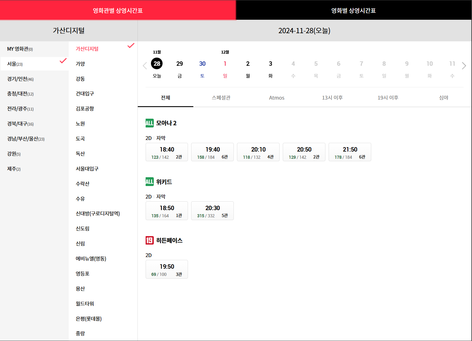영화관별 상영 시간표와 영화별 상영 시간표로 나눕니다.