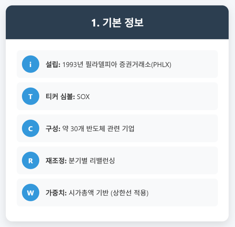 - 투자 수단: 이 지수를 기반으로 한 ETF와 옵션 상품들이 있어 투자자들이 반도체 섹터에 투자할 수 있는 수단을 제공합니다.