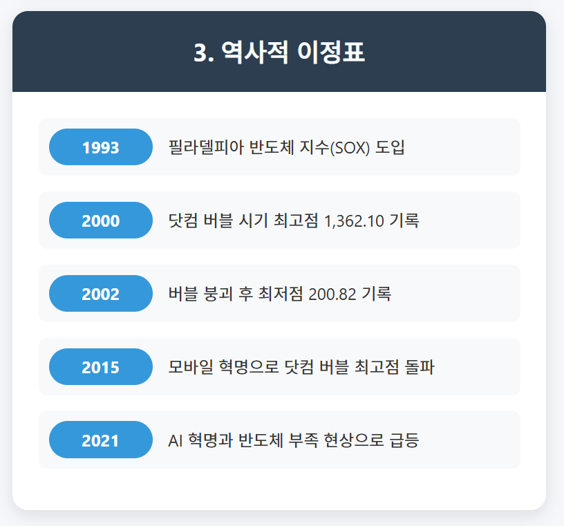 이 지수는 반도체 산업의 성장과 침체를 반영하며, 기술 주식 시장의 전반적인 건강 상태를 가늠하는 중요한 지표로 활용되는데요. 특히 글로벌 경제와 기술 트렌드에 민감하게 반응하기 때문에 많은 투자자와 애널리스트들이 주목하는 지수입니다.
