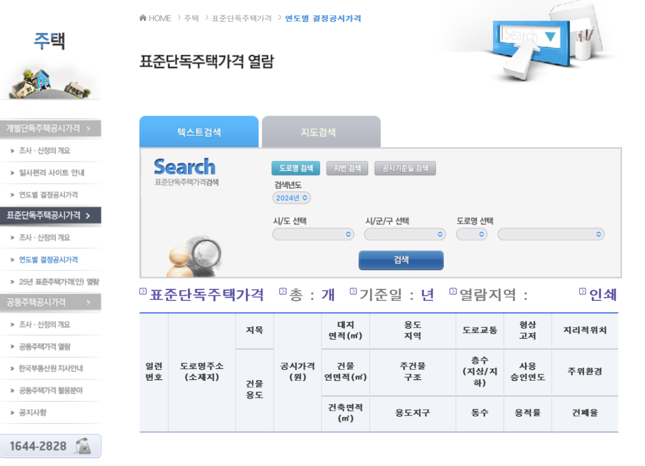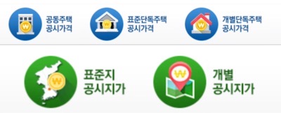 공동주택공시가격, 표준단독주택공시가격, 개별단독주택공시가격, 표준지공시지가, 개별공시지가 등 부동산 공시가격을 조회할 수 있습니다.