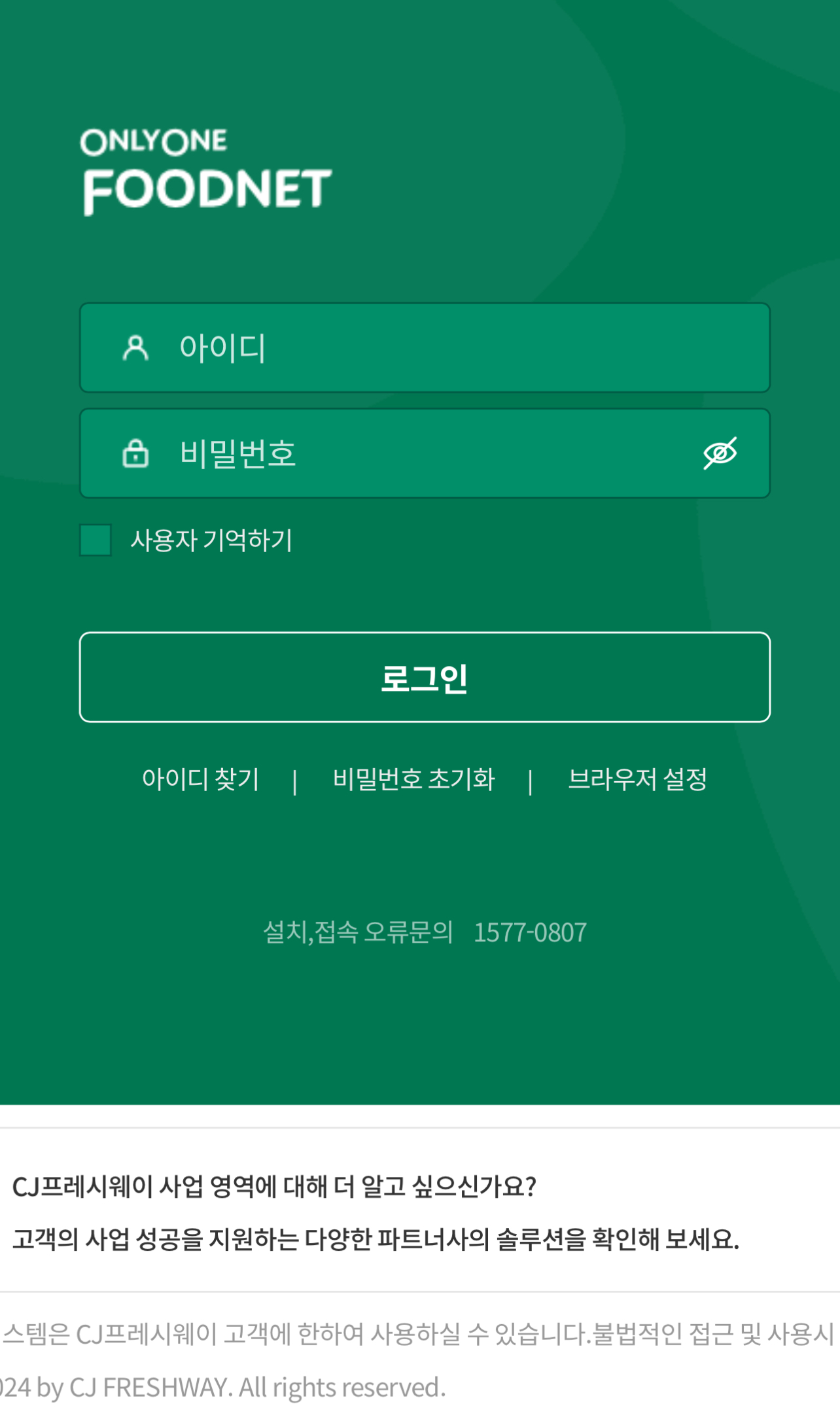 온리원 푸드넷 바로가기 (CJ프레시웨이)