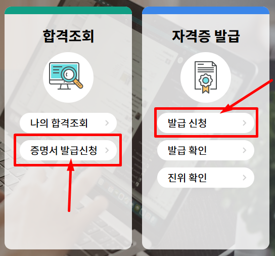 자격증 발급 및 시험 합격 확인서 발급을 받으시려면 국시원 홈페이지로 접속해주세요!