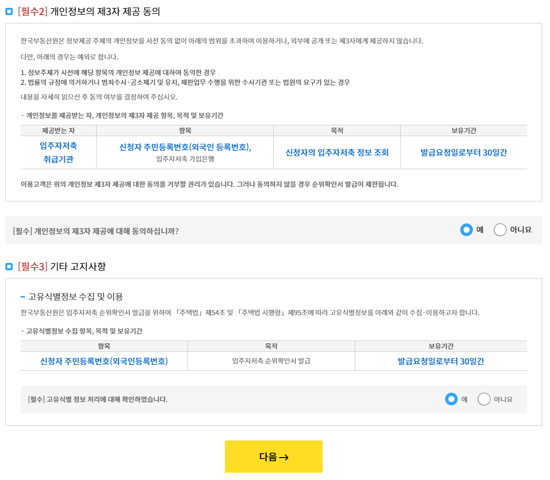 - 개인정보 및 조건 확인 후 순위 확인서 발급