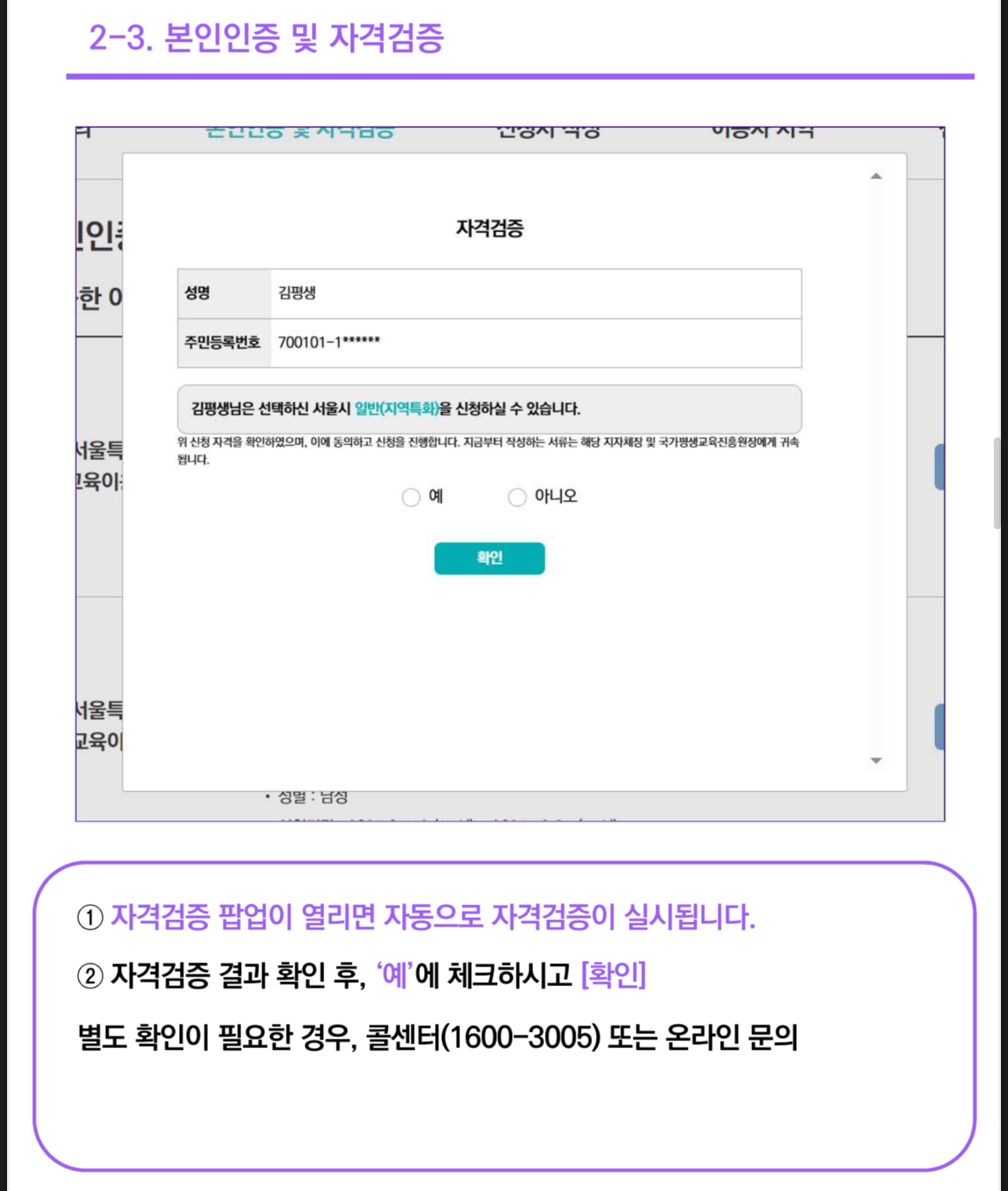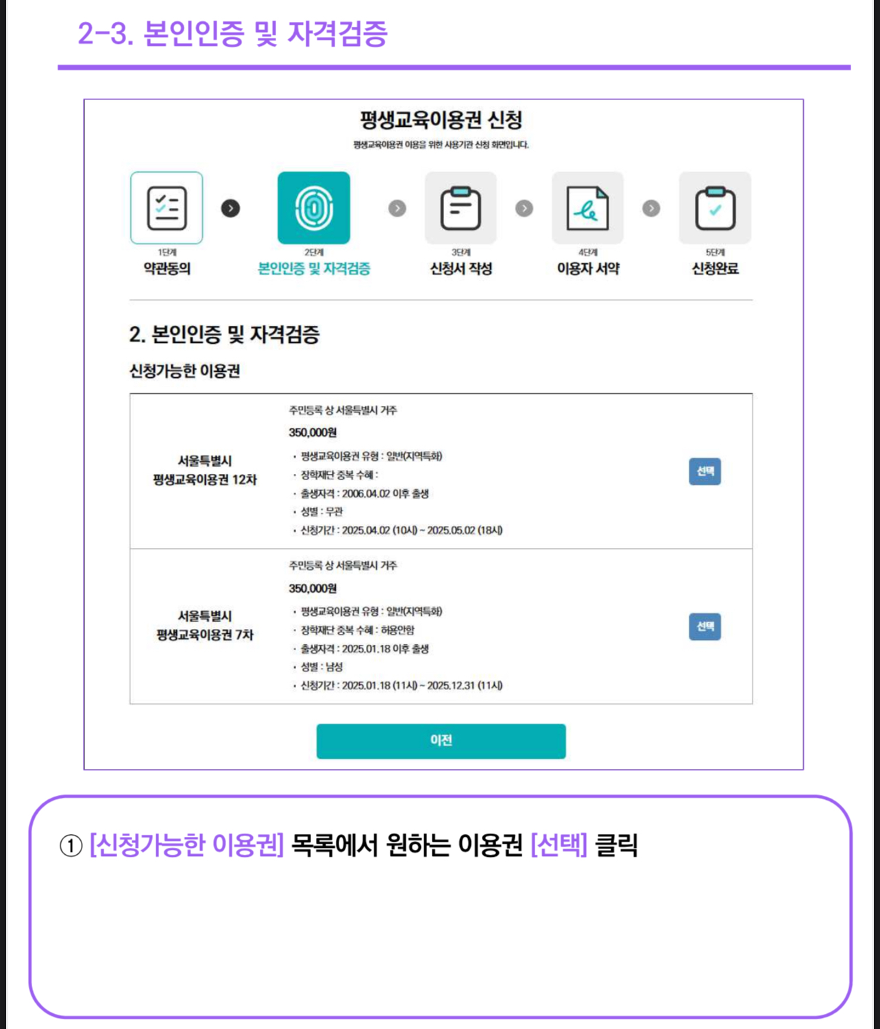 평생교육이용권 신청자격 조회하기