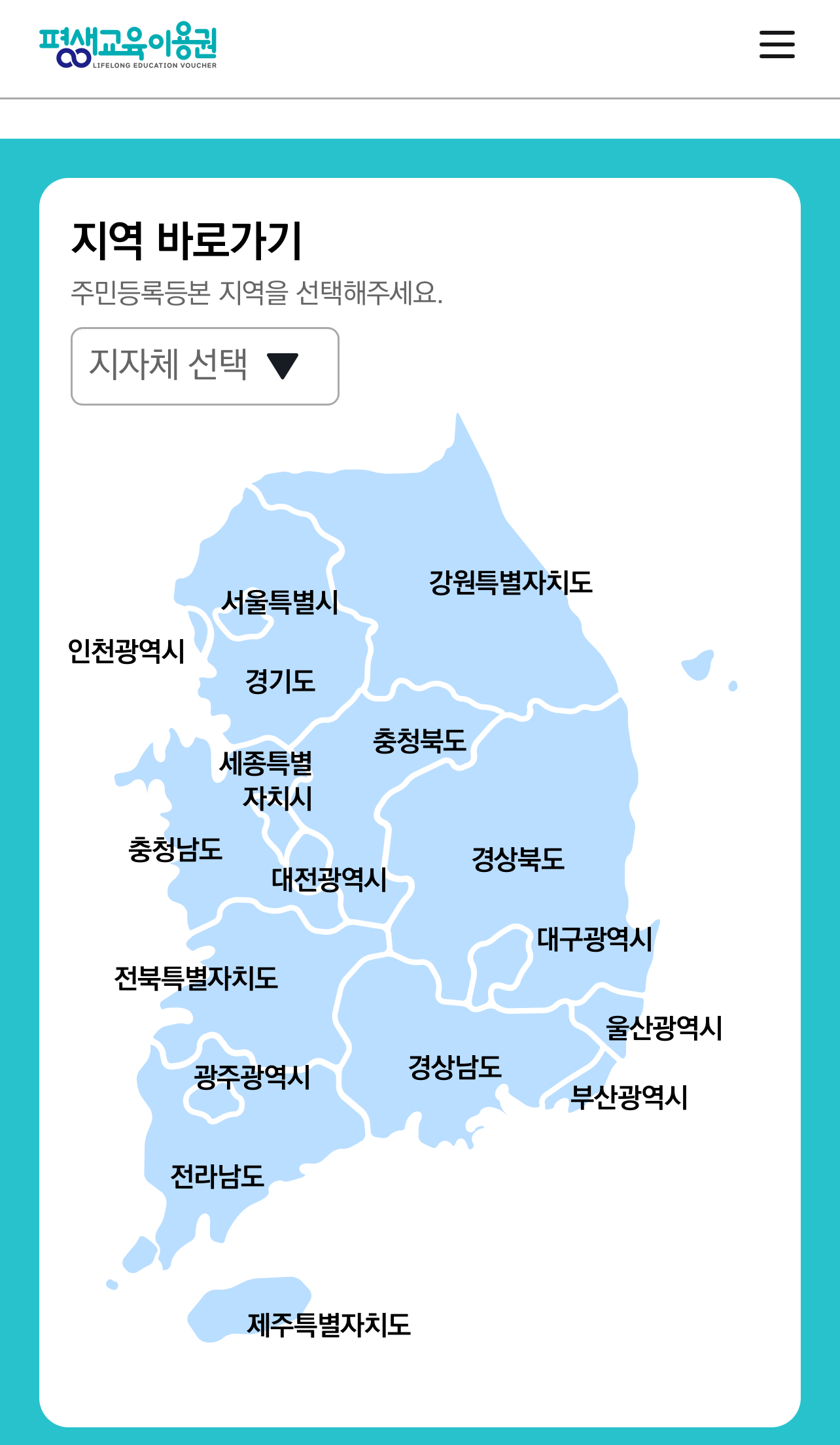 평생교육이용권 누리집 [지역 바로가기] - 주민등록등본상 지역 선택 - 평생교육이용권(지역) 누리집에서 확인하실 수 있습니다.